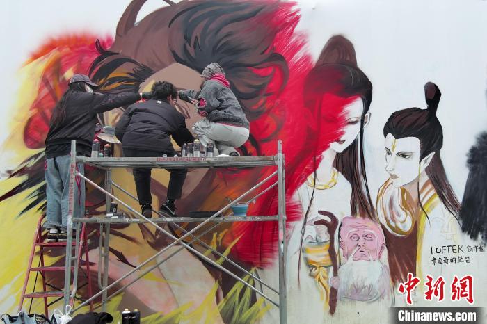 3月4日,創(chuàng)作者制作《哪吒2》墻繪。中新社記者 王剛 攝