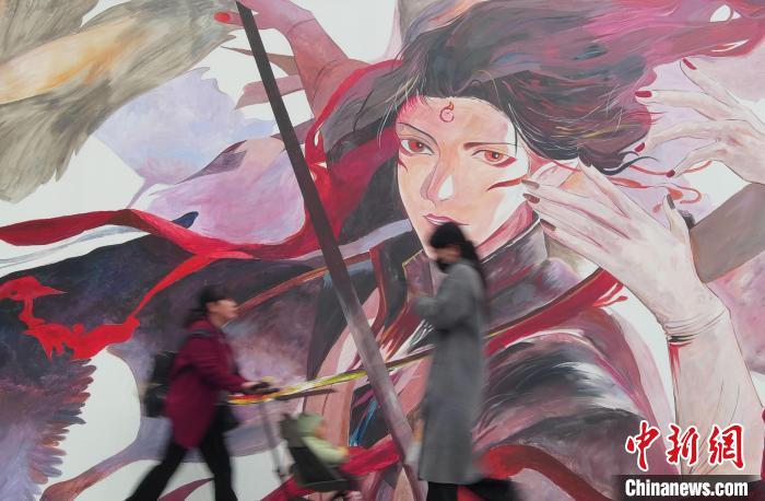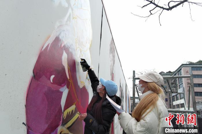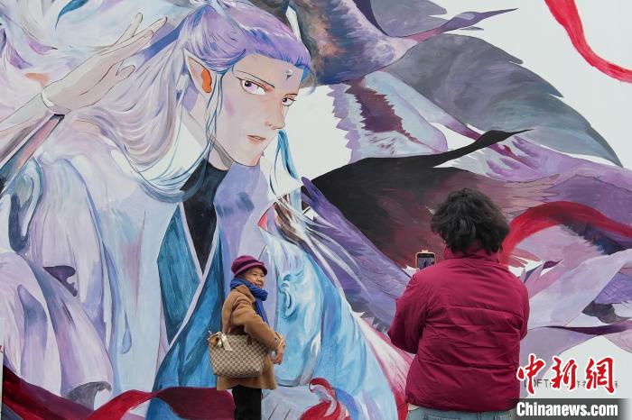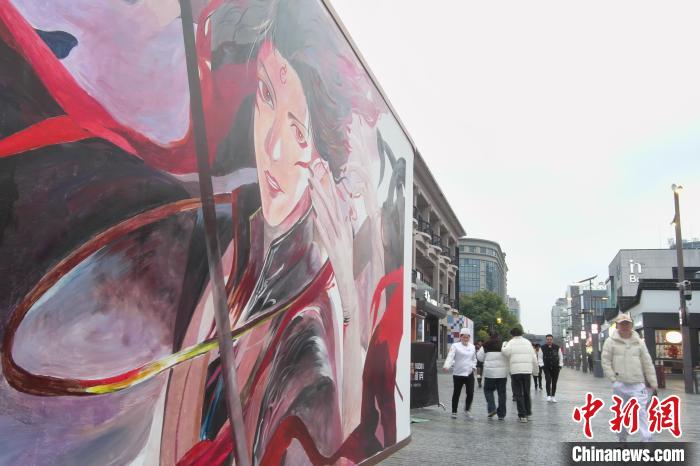 3月4日,《哪吒2》墻繪在湖濱路步行街展出。中新社記者 王剛 攝