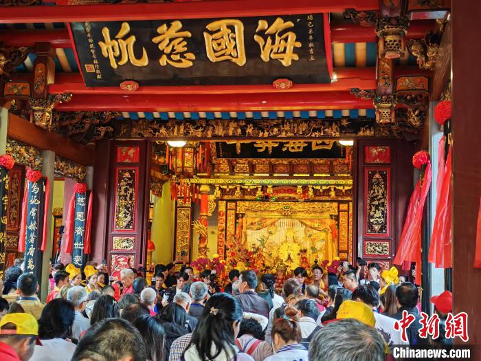 圖為臺(tái)胞在烏坭天后宮參加?jì)屪婕腊莼顒?dòng)。中新社記者 郭軍攝(來(lái)源:中新網(wǎng))