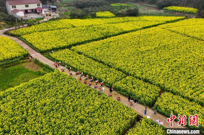 3月10日,四川眉山,航拍貴平鎮(zhèn)油菜基地。中新社記者 劉忠俊 攝