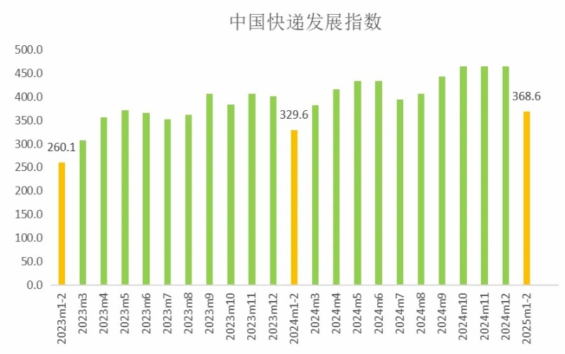 1—2月,快遞發(fā)展規(guī)模指數(shù)為519.3,同比提升27.6%。從分項指標(biāo)看,預(yù)計1—2月快遞業(yè)務(wù)量同比增長24.6%,業(yè)務(wù)收入同比增長16.6%。1—2月,快遞市場發(fā)展動力較為強勁,受春節(jié)假期影響,階段性特征明顯。春節(jié)前,快遞企業(yè)積極服務(wù)“年貨節(jié)”促銷,增強早茶、鮮花、中藥等產(chǎn)品綜合服務(wù)能力,助力各地農(nóng)貨上行。行業(yè)實現(xiàn)較快增長,日均業(yè)務(wù)量約6.2億件,超2024年“雙11”日均水平。春節(jié)假期(1月28日—2月4日),快遞企業(yè)積極保障用戶基本寄遞需求,業(yè)務(wù)量達(dá)11.5億件,與去年農(nóng)歷同期相比增長31%。假期結(jié)束后,快遞企業(yè)快速恢復(fù)正常運行。自2月5日起,攬收量持續(xù)超5億件,日均業(yè)務(wù)量達(dá)5.4億件。