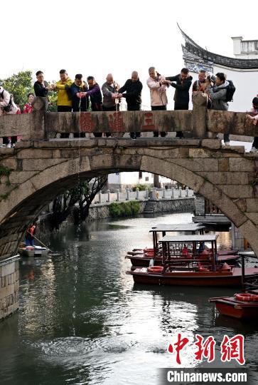 圖為兩岸青年代表經(jīng)過福州三通橋。中新社記者 呂明 攝