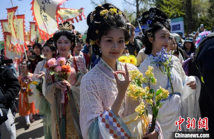 3月29日,“花神”巡游展現(xiàn)國(guó)風(fēng)之美。當(dāng)日,“一年四季·泉在濟(jì)南”系列活動(dòng)暨2025濟(jì)南花朝節(jié)啟動(dòng)儀式在山東濟(jì)南大明湖景區(qū)舉行。“百花之神”與“十二花神”沿大明湖畔巡游,開(kāi)啟春日浪漫之旅。中新社記者 張勇 攝