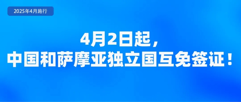 《中華人民共和國(guó)政府和薩摩亞獨(dú)立國(guó)政府關(guān)于互免簽證的協(xié)定》于2025年4月2日起生效。根據(jù)協(xié)定,持有效的中國(guó)外交、公務(wù)、公務(wù)普通及普通護(hù)照和持有效的薩摩亞獨(dú)立國(guó)外交、官員及普通護(hù)照公民,在締約另一方入境、出境或者過(guò)境,單次停留不超過(guò)30日,每180日累計(jì)停留不超過(guò)90日,免辦簽證。如需在締約另一方境內(nèi)停留超過(guò)上述停留期限,或在締約另一方境內(nèi)從事工作、學(xué)習(xí)、定居、新聞報(bào)道等須經(jīng)締約另一方主管部門(mén)事先批準(zhǔn)的活動(dòng),應(yīng)當(dāng)在入境締約另一方前申請(qǐng)相應(yīng)簽證。