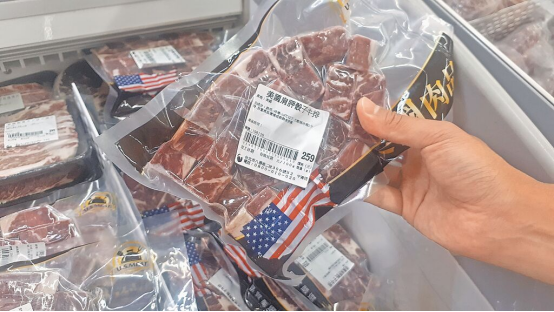 圖為大賣(mài)場(chǎng)販?zhǔn)鄣拿绹?guó)牛肉。(臺(tái)灣“中時(shí)新聞網(wǎng)”資料照片)