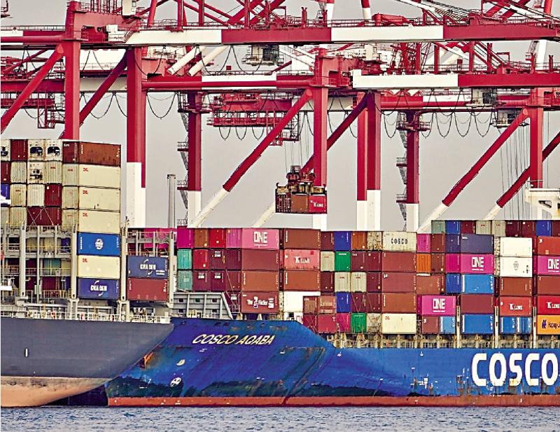 圖:臺灣業(yè)者認為,兩岸產(chǎn)業(yè)結構高度互補,進一步開拓大陸市場,可以減輕美國關稅的沖擊。圖為高雄港貨輪進行貨柜裝卸作業(yè)。