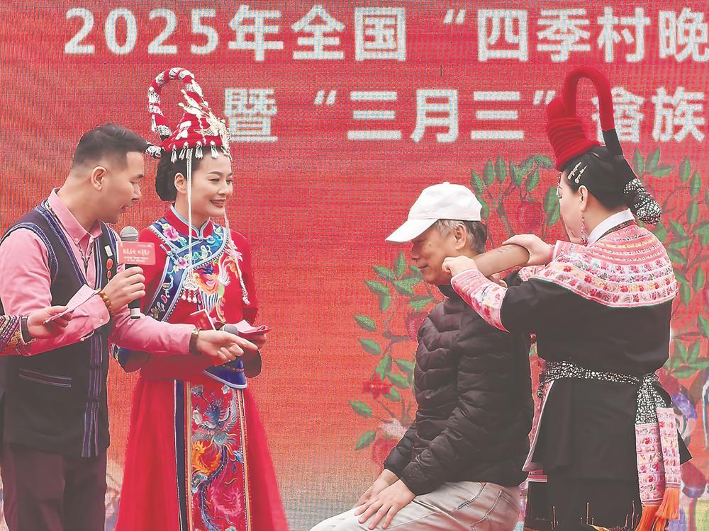 烏米飯、清明粿、竹筒蝦、粽子、糍粑、青紅酒……3月28日,以“福聚晉安 鳳舞畬鄉(xiāng)”為主題的2025年全國“四季村晚”示范展示點(diǎn)暨“三月三”畬族文化活動(dòng),在福州市晉安區(qū)日溪鄉(xiāng)舉辦。當(dāng)頭戴鳳凰髻、身穿鳳凰服的畬族姑娘用畬鄉(xiāng)好味道迎接臺(tái)灣同胞時(shí),“榕臺(tái)一家親”便有了具象化的呈現(xiàn)。