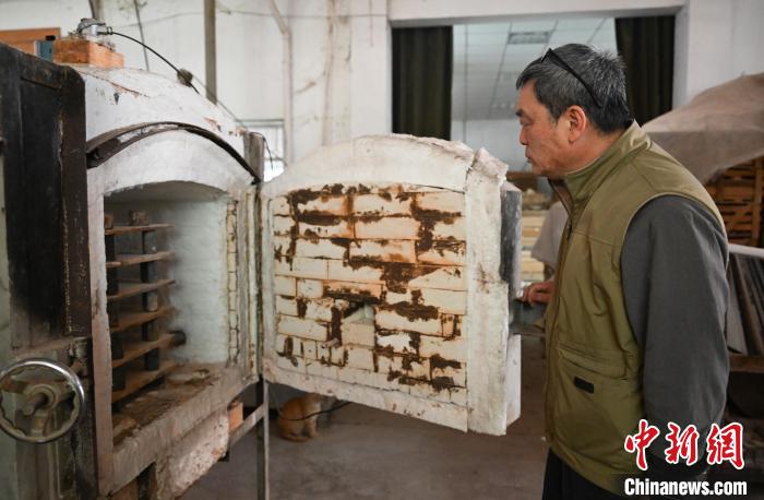 圖為:徐瑞鴻展示“跟隨”他40年左右的窯爐。中新社記者 王剛 攝