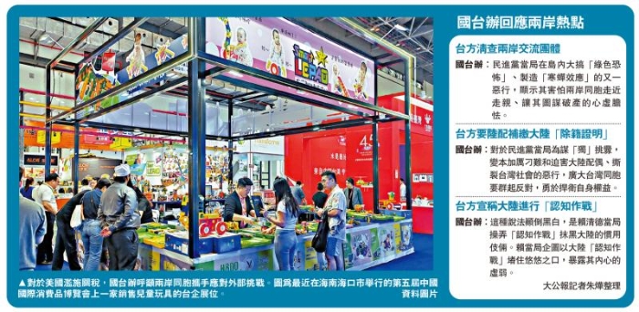 圖:對(duì)于美國(guó)濫施關(guān)稅,國(guó)臺(tái)辦呼吁兩岸同胞攜手應(yīng)對(duì)外部挑戰(zhàn)。圖為最近在海南??谑信e行的第五屆中國(guó)國(guó)際消費(fèi)品博覽會(huì)上一家銷(xiāo)售兒童玩具的臺(tái)企展位。\資料圖片