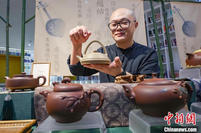 圖為臺(tái)灣青年林燦煌展示他制作的紫砂壺。中新社記者 泱波 攝
