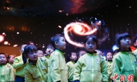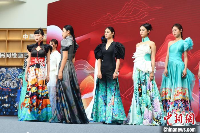 4月20日,模特展示以農(nóng)民畫元素為藍(lán)本設(shè)計(jì)的服飾。中新社記者 黃彥君 攝