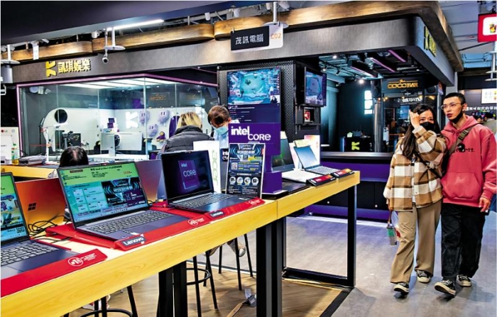 圖:美國聲稱很快就會(huì)宣布針對(duì)半導(dǎo)體適用稅率,臺(tái)業(yè)界憂心忡忡。圖為臺(tái)北一家商場展銷電子產(chǎn)品。