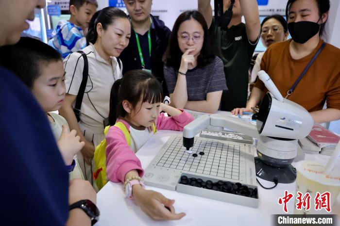 5月1日,福建福州,小朋友與智能機(jī)器人下棋。中新社記者 王東明 攝
