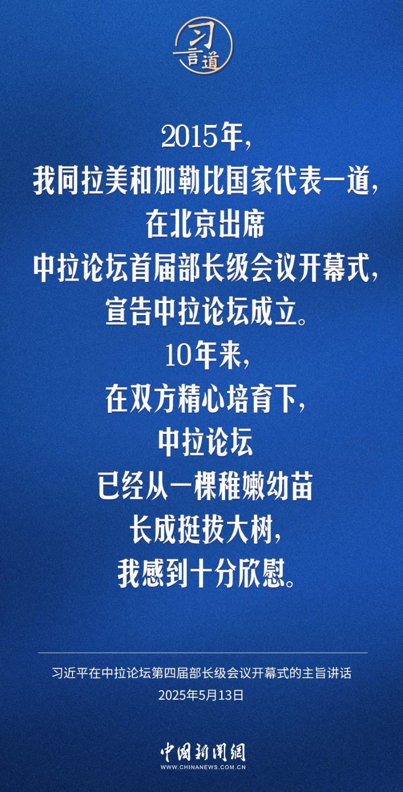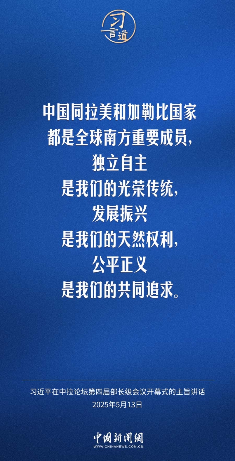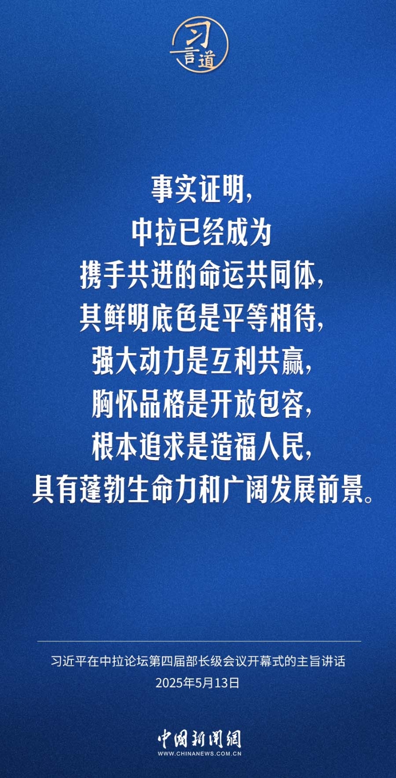 5月13日,國家主席習近平在北京出席中國-拉美和加勒比國家共同體論壇第四屆部長級會議開幕式并發(fā)表主旨講話。習近平指出——
