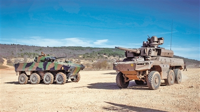 法國(guó)陸軍裝備的VBCI步兵戰(zhàn)車(chē)(左)和“藪貓”多功能裝甲車(chē)(右)。