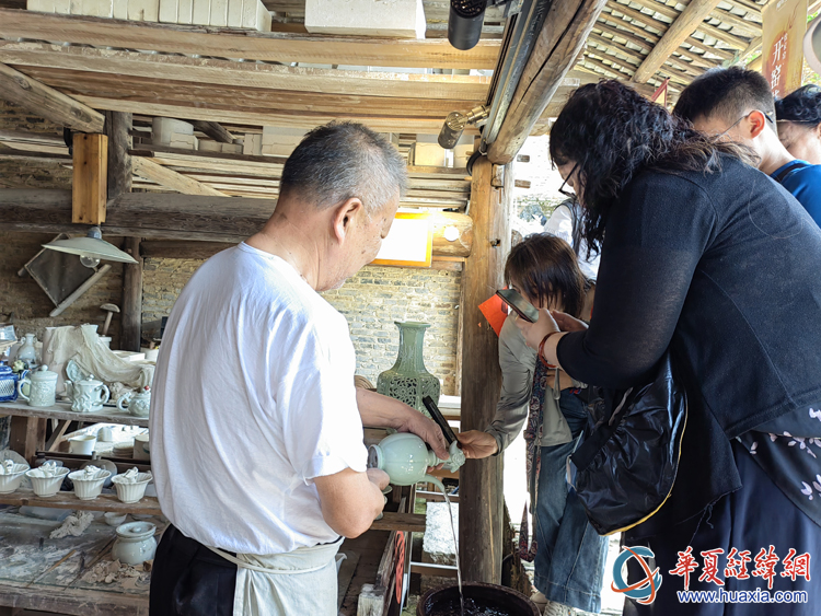 兩岸媒體人穿行于千年老城里弄之間,感受里弄民居建筑和民俗文化,參觀各具特色的瓷器店鋪,姿態(tài)各異、色彩艷麗的瓷器工藝品讓大家不時駐足觀看。