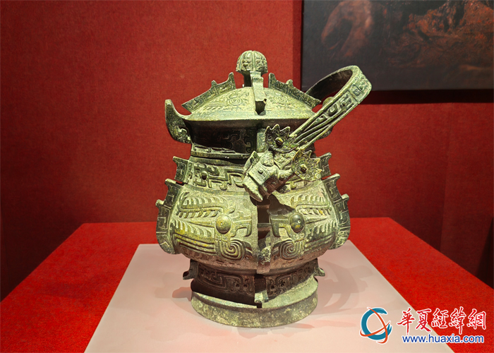 劉賀墓出土的西周鳳鳥紋青銅提梁卣。(攝影:虞鷹)