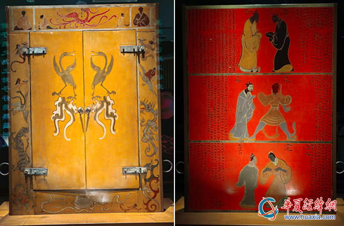 劉賀墓出土的孔子像漆衣鏡,由鏡蓋、鏡框、青銅鏡組成,是中國考古史上首次發(fā)現(xiàn)由銅、漆板構(gòu)成面板的衣鏡。因其背板上有孔子及其弟子畫像和傳記被定名為“孔子衣鏡”。這也是目前已知最早孔子形象。(攝影:虞鷹)