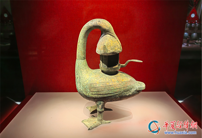 南昌漢代?;韬顕z址博物館展出的青銅雁魚缸燈。(攝影:虞鷹)