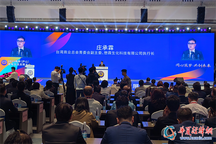 5月8日,以“同心筑夢 共創(chuàng)未來”為主題的2025兩岸(廬山)青年交流發(fā)展大會開幕。臺灣商業(yè)總會青委會副主委、懋霖生化科技有限公司執(zhí)行長莊承霖在開幕式上發(fā)言。(攝影:虞鷹)