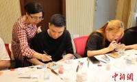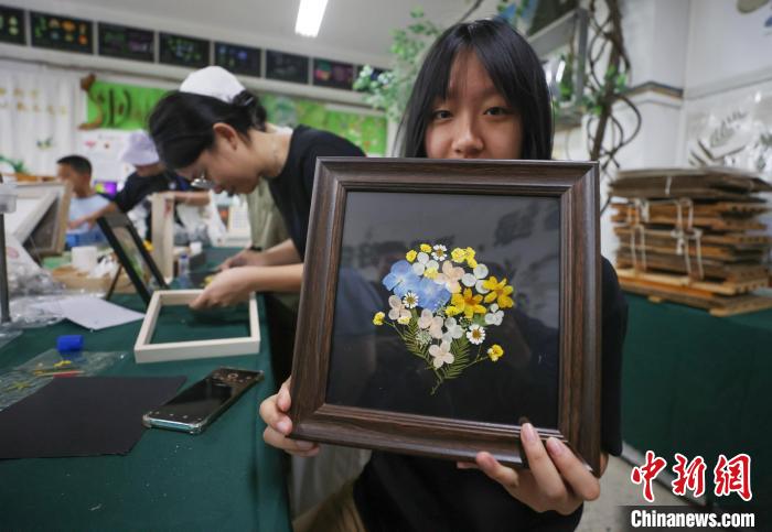 5月25日,學(xué)生在南京農(nóng)業(yè)大學(xué)“植愈工坊”展示制作好的植物畫。中新社記者 泱波 攝