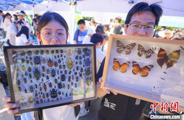 5月25日,南京農(nóng)業(yè)大學(xué)植物保護(hù)學(xué)院的學(xué)生展示蝴蝶和昆蟲標(biāo)本。中新社記者 泱波 攝