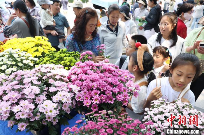 5月25日,南京農(nóng)業(yè)大學(xué)展示的菊花品種吸引市民目光。中新社記者 泱波 攝