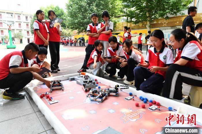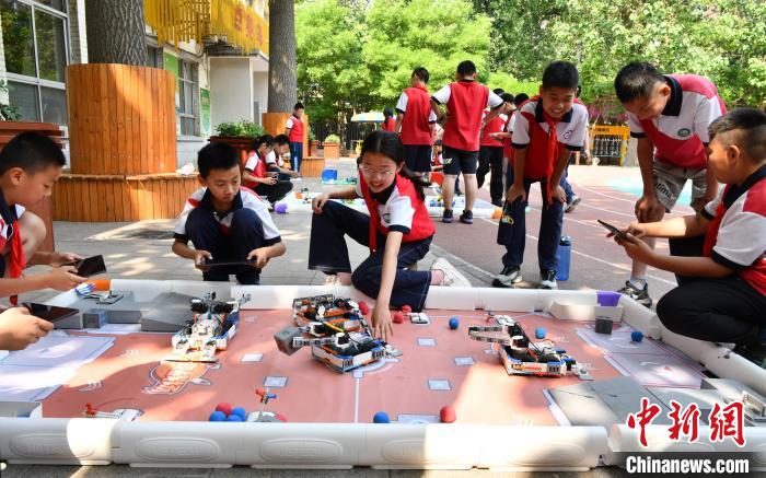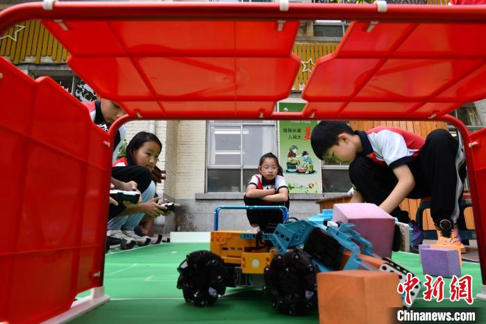 5月27日,河北省石家莊市育才小學(xué),學(xué)生參與體驗(yàn)多種科技賽事項(xiàng)目。中新社記者 翟羽佳 攝