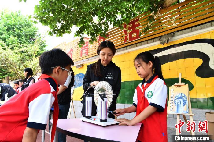 5月27日,河北省石家莊市育才小學(xué),學(xué)生體驗(yàn)靜電感應(yīng)起電器。中新社記者 翟羽佳 攝