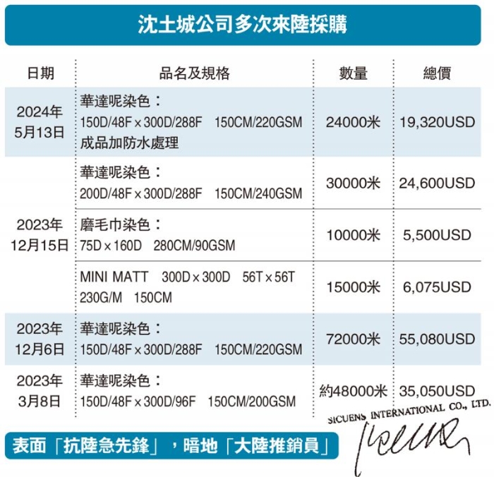 圖:沈土城公司多次來陸采購