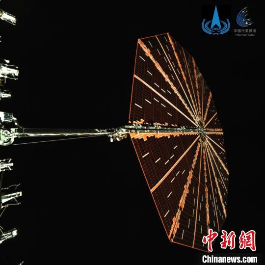 天問二號(hào)探測(cè)器圓形柔性太陽翼展開圖。(國家航天局供圖)