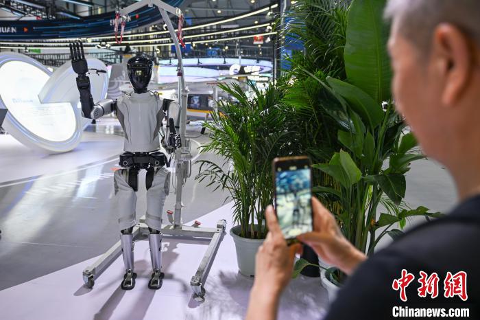 6月11日,四川成都,展館內(nèi)參觀者正用手機(jī)拍攝機(jī)器人。中新社記者 劉忠俊 攝