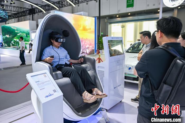 6月11日,四川成都,參觀者現(xiàn)場(chǎng)體驗(yàn)3D城市場(chǎng)景。中新社記者 劉忠俊 攝