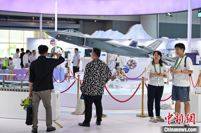 6月11日,四川成都,殲-20和殲-10C模型吸引參觀者駐足拍攝。中新社記者 劉忠俊 攝