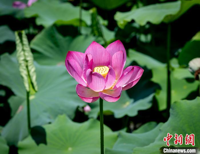 圖為游客拍攝盛開的荷花。韓金雨 攝