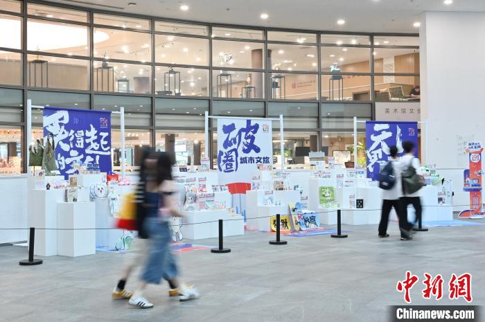 6月18日,琶洲文創(chuàng)設(shè)計(jì)大賽作品快閃展在廣東省廣州藝術(shù)博物院(廣州美術(shù)館)展出。圖為展覽吸引參觀者。中新社記者 陳楚紅 攝