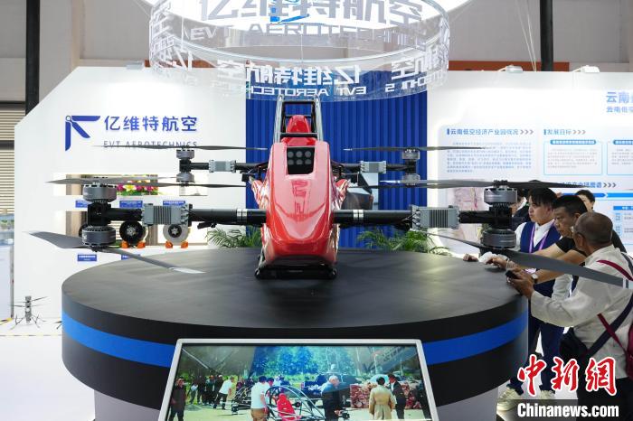 6月19日,展出的一架電動載人垂直起降飛行器吸引觀眾。當日,第9屆中國—南亞博覽會暨第29屆中國昆明進出口商品交易會在昆明開幕,低空經(jīng)濟企業(yè)攜產(chǎn)品亮相,展示行業(yè)前沿成果,吸引觀眾目光。中新社記者 劉冉陽 攝