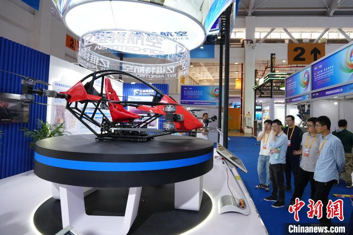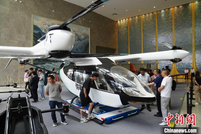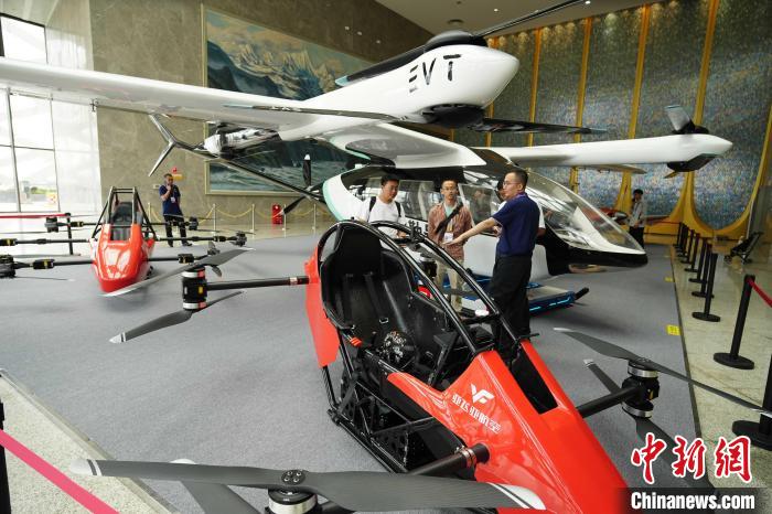 6月19日,展出的垂直起降飛行器吸引觀眾。當日,第9屆中國—南亞博覽會暨第29屆中國昆明進出口商品交易會在昆明開幕,低空經(jīng)濟企業(yè)攜產(chǎn)品亮相,展示行業(yè)前沿成果,吸引觀眾目光。中新社記者 劉冉陽 攝