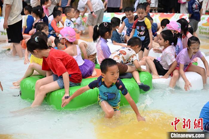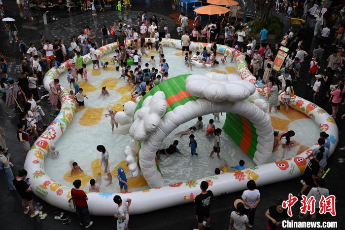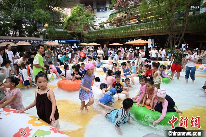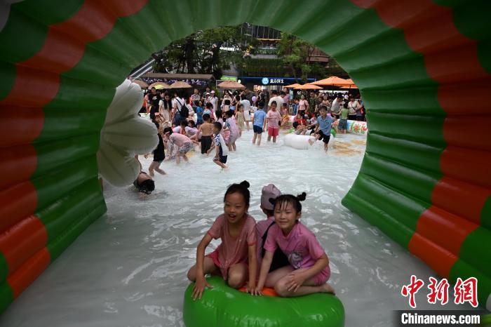 6月22日,四川成都一商業(yè)中心設置的水上樂園人氣旺,吸引不少孩童前來戲水度夏。中新社記者 張浪 攝
