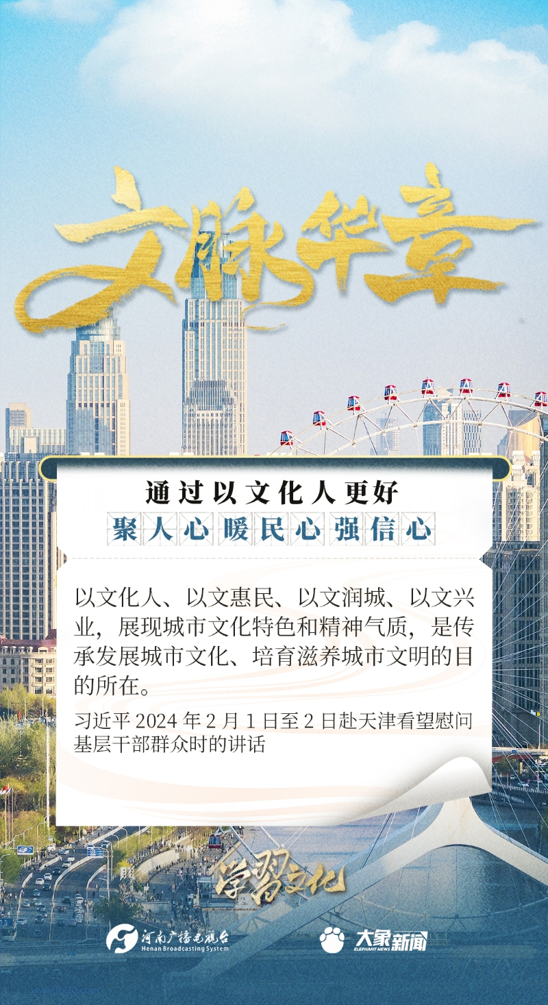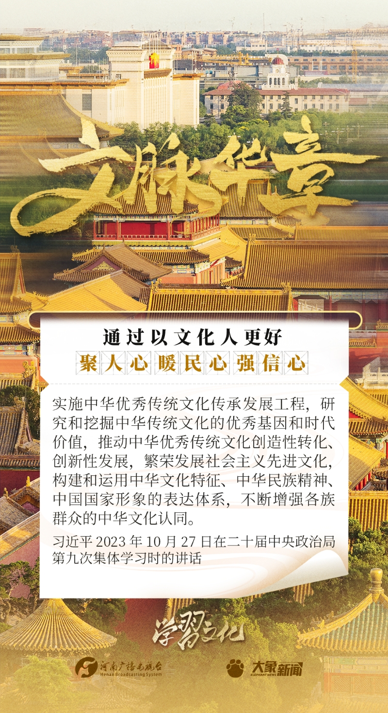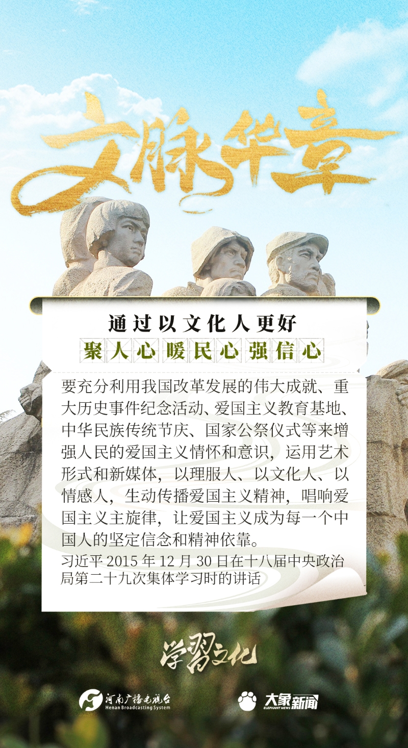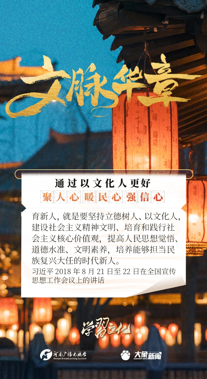 以文化人,是中華民族延續(xù)幾千年的一個(gè)傳統(tǒng),也是增強(qiáng)民族凝聚力、民族自豪感的重要依托。習(xí)近平總書記一貫倡導(dǎo)以文化人,激發(fā)廣大干部群眾改革創(chuàng)新、振興發(fā)展的激情和斗志,發(fā)表了一系列重要講話,大象新聞邀您一起學(xué)思踐悟。