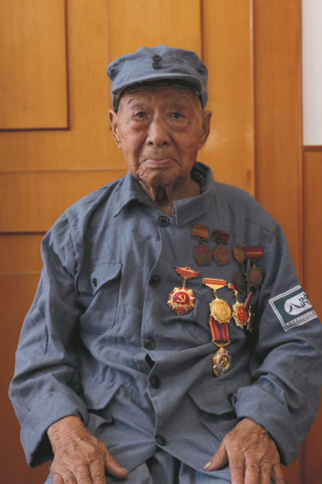 得知記者來采訪,崔老特地換上了心愛的舊軍裝,將榮譽紀念章掛在左胸前。雖然年過百歲,老人身體仍算硬朗,只有耳朵幾乎聽不到什么聲音了。記者將問題寫在紙上給崔老看,他依然能與記者交流。