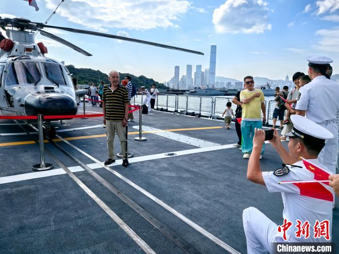 “這是艦上的主炮,屬于130毫米單管艦炮,能精準(zhǔn)打擊水面目標(biāo)?!薄斑@塊像巧克力的區(qū)域是艦上的導(dǎo)彈發(fā)射系統(tǒng)?!薄拷炆?,海軍士兵生動(dòng)形象地介紹,引發(fā)民眾陣陣笑聲。今年89歲的香港市民陳永練靜靜聽著,不由得濕了眼眶。