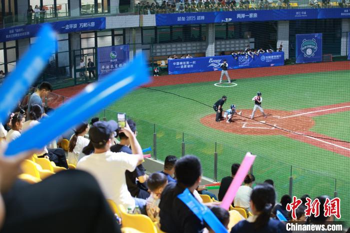 7月9日,浙江平湖,觀眾為兩岸棒球運動員喝彩。中新社發(fā) 孫楊洋 攝