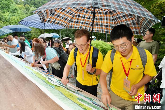 7月10日,中美青少年代表攜手共繪《鼓嶺緣·和平之約》畫作。當日,2025年“鼓嶺緣”中美青少年合唱周系列活動走進福建福州鼓嶺旅游度假區(qū),中美青少年代表攜手共繪《鼓嶺緣·和平之約》畫作,以藝術(shù)為橋傳遞和平愿景。中新社記者 王東明 攝