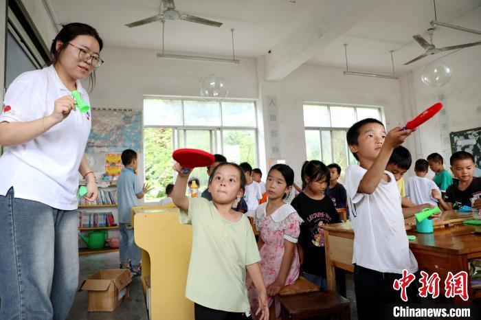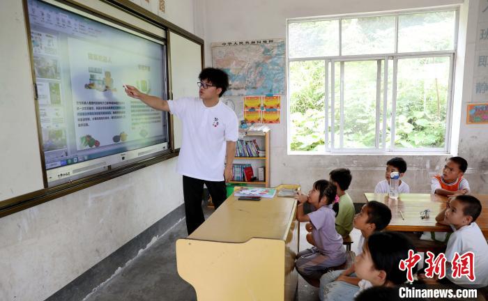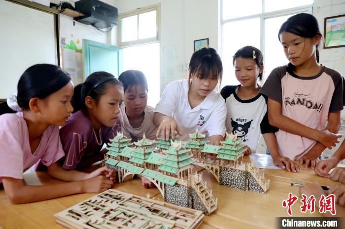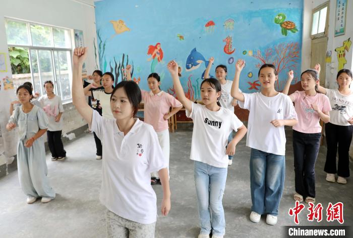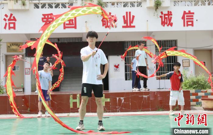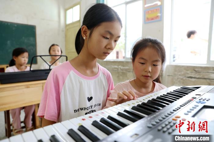 近日,南通大學大學生志愿者在廣西三江侗族自治縣獨峒鎮(zhèn)知了小學開展暑期支教活動,向120余名學生傳授電子琴、舞蹈、舞龍、AI科技等課程知識,“點亮”侗鄉(xiāng)娃多彩暑期生活。圖為支教活動現(xiàn)場。龔普康 攝