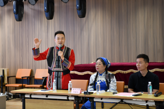 座談會(huì)上,贛臺(tái)兩地的客家歌手分別作了交流發(fā)言,探討客家山歌的創(chuàng)作經(jīng)驗(yàn)和心得體會(huì)。圍繞客家山歌傳統(tǒng)腔調(diào)的唱法展開熱烈討論,從唱腔的獨(dú)特韻味到演唱時(shí)的氣息運(yùn)用,從傳統(tǒng)曲目的經(jīng)典演繹到現(xiàn)代元素的融合創(chuàng)新,大家暢所欲言、氣氛熱烈。臺(tái)灣客家山歌藝術(shù)團(tuán)的歌手們現(xiàn)場(chǎng)分享了《老腔山歌》《山歌子》《平板》等傳統(tǒng)客家山歌的唱法;贛州客家歌手們討論到動(dòng)情處,清唱了《打支山歌過(guò)橫排》《牛牯調(diào)》《客家之歌》等經(jīng)典客家山歌曲目。