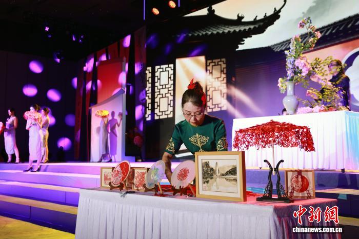 7月19日,詩(shī)會(huì)中展示插花、剪紙等非遺技藝。當(dāng)晚,“秀山麗水·飛越夢(mèng)想”國(guó)際詩(shī)會(huì)在浙江麗水舉行,來(lái)自海內(nèi)外的留學(xué)生、華僑代表及文藝工作者相聚一堂,以中外經(jīng)典詩(shī)篇朗誦為核心,融入歌舞演繹、民族服飾走秀、器樂(lè)合奏和非遺技藝展示等多元形式,誦經(jīng)典、展風(fēng)采、傳文化。孫楊洋 攝