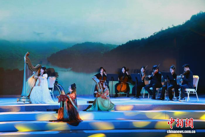 7月19日,表演者演奏樂(lè)器。當(dāng)晚,“秀山麗水·飛越夢(mèng)想”國(guó)際詩(shī)會(huì)在浙江麗水舉行,來(lái)自海內(nèi)外的留學(xué)生、華僑代表及文藝工作者相聚一堂,以中外經(jīng)典詩(shī)篇朗誦為核心,融入歌舞演繹、民族服飾走秀、器樂(lè)合奏和非遺技藝展示等多元形式,誦經(jīng)典、展風(fēng)采、傳文化。孫楊洋 攝