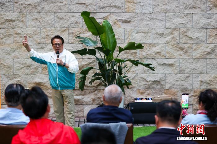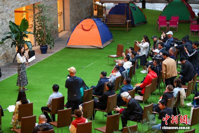 圖為詩(shī)人拍照留念。中新社記者 薛蒂 攝