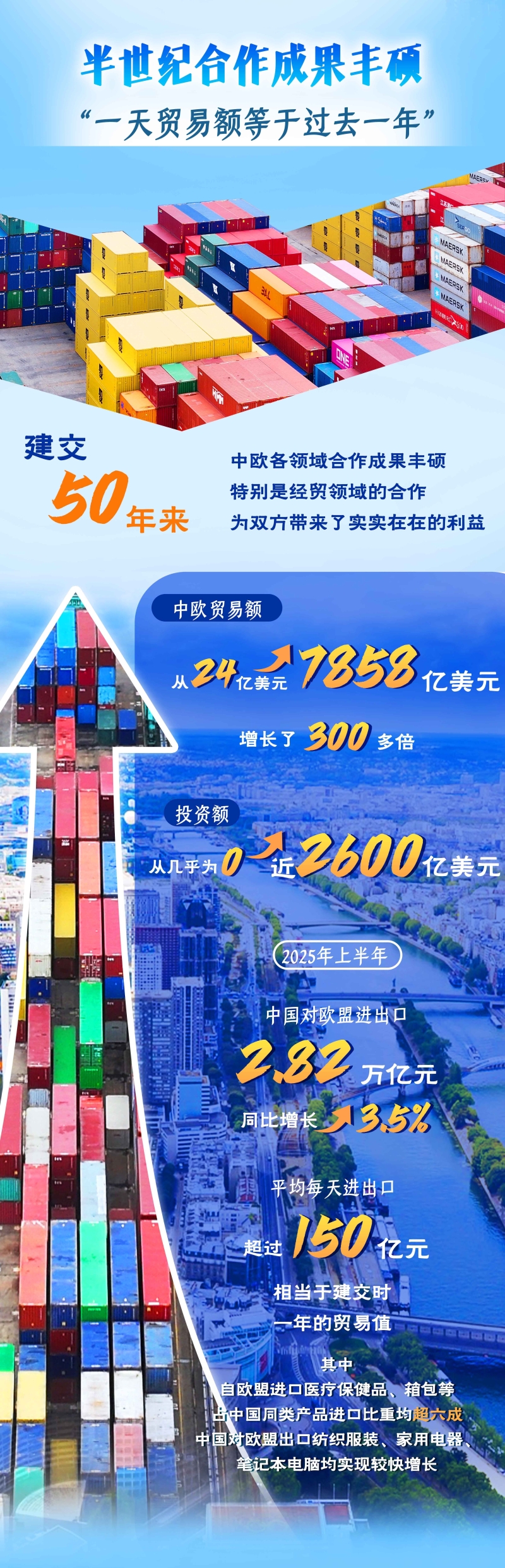 2025年是中國歐盟建交50周年。回望半個世紀(jì)的風(fēng)雨兼程,中歐關(guān)系從刺穿冷戰(zhàn)陰云的“破冰者”發(fā)展成為經(jīng)濟(jì)全球化合作的“引領(lǐng)者”,從試探性的握手,發(fā)展為世界經(jīng)濟(jì)增長的“雙引擎”。